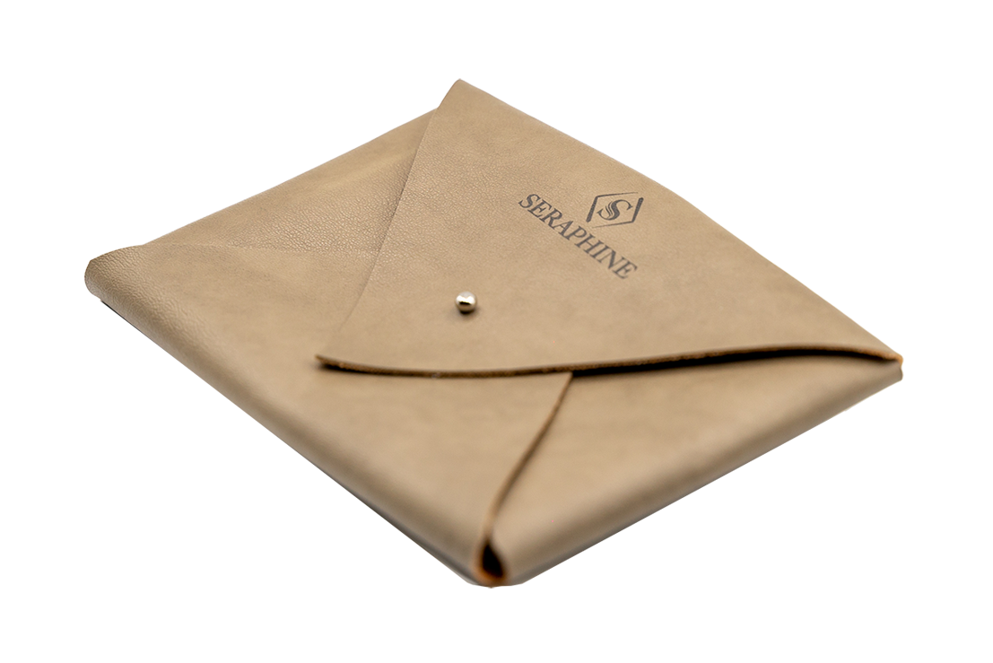 La chiusura a bottone garantisce sicurezza e un tocco di raffinatezza, mentre il design pulito e la finitura in ecopelle donano un aspetto premium. È personalizzabile con il tuo logo, per un tocco unico e professionale.