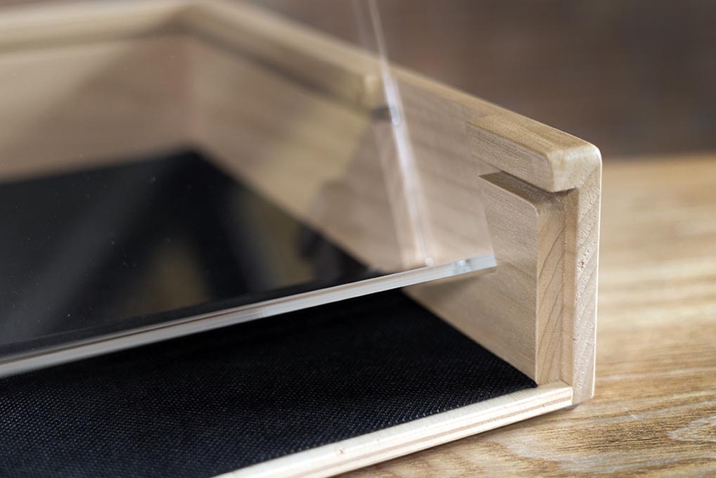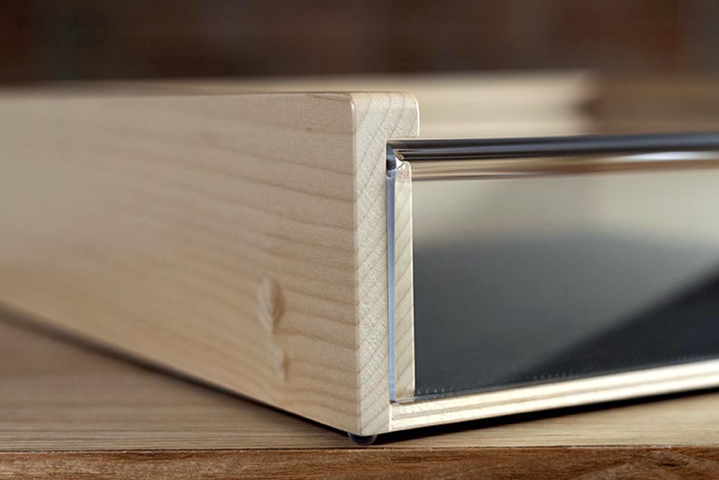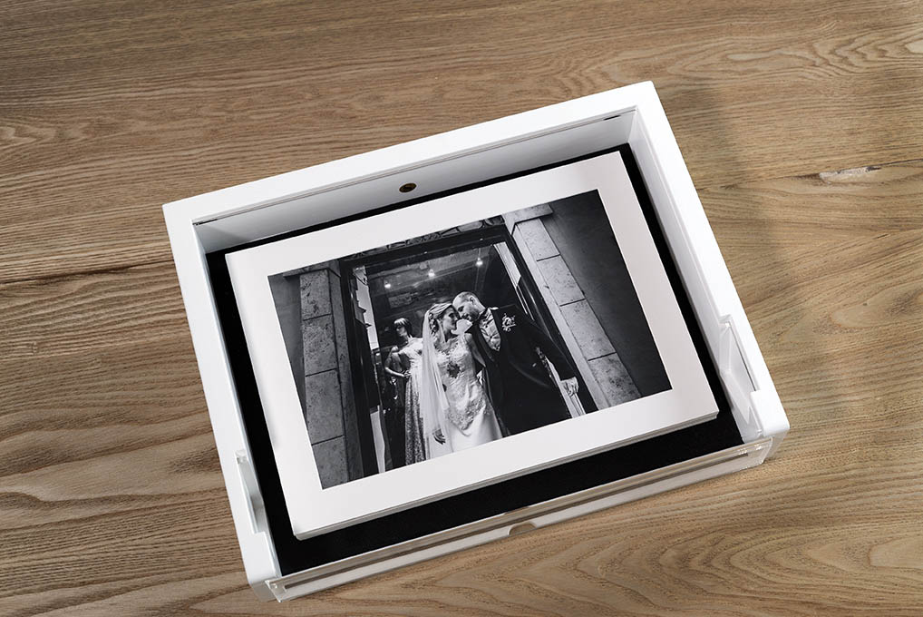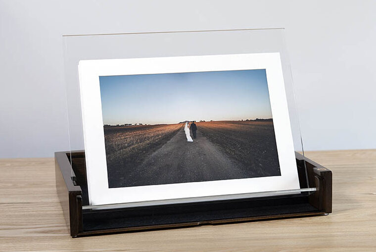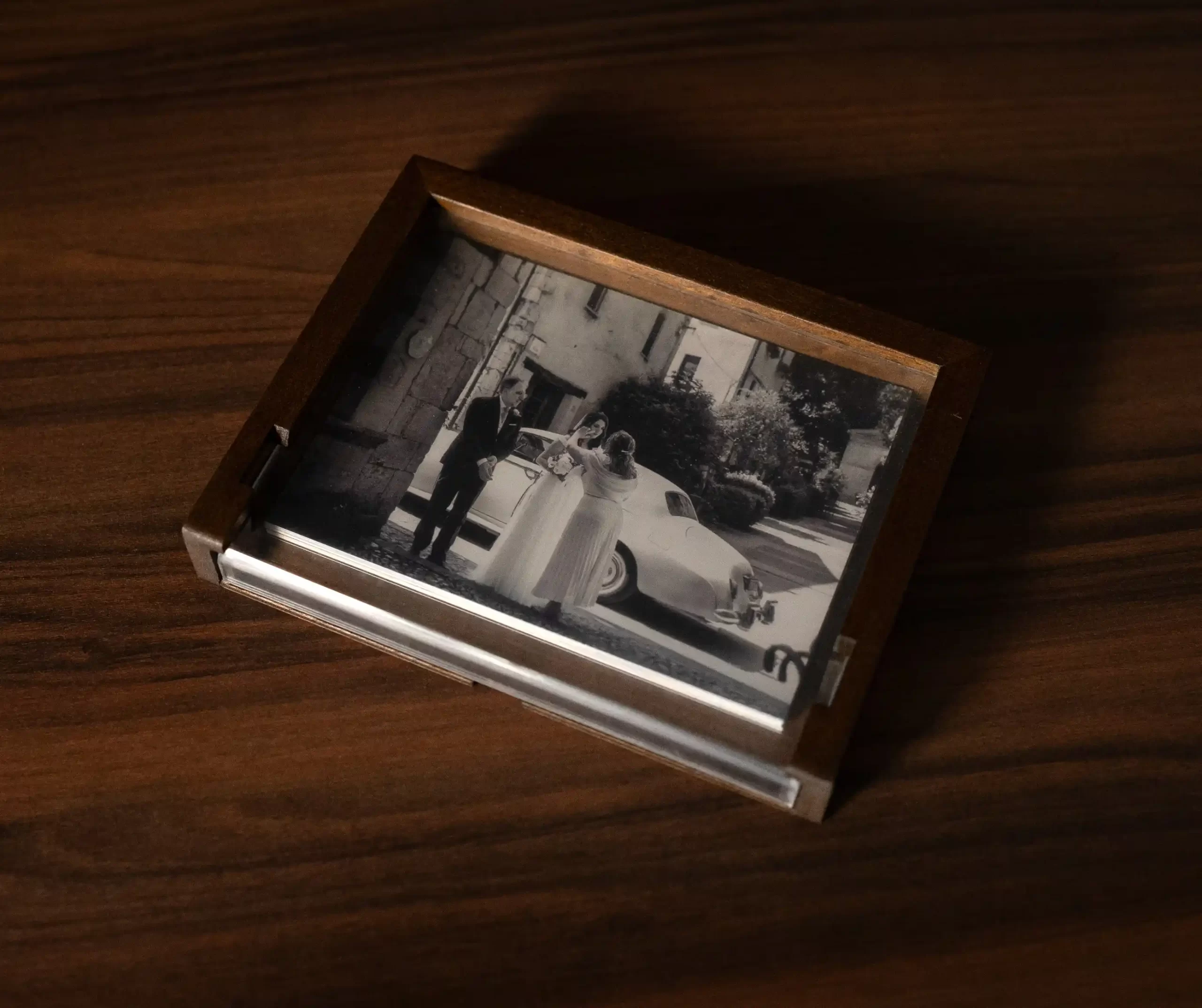 Realizzata artigianalmente in plexiglass trasparente e legno di alta qualità, la Slidebox è progettata per contenere, proteggere ed esporre i tuoi album o le tue stampe fotografiche con eleganza.